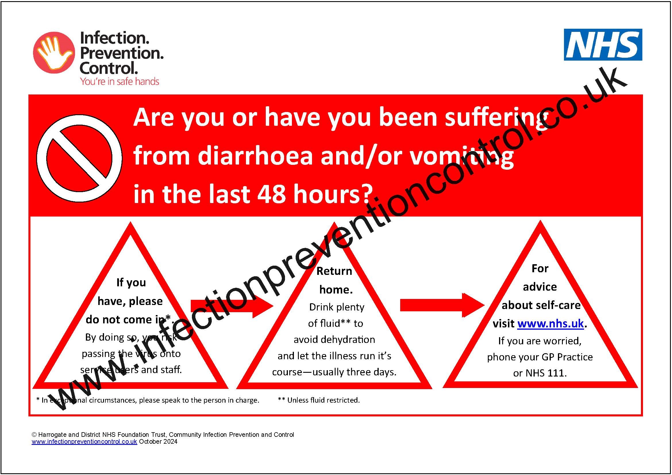 Notice for display at entrances giving advice for those who have been suffering from diarrhoea and/or vomiting in the last 48 hours